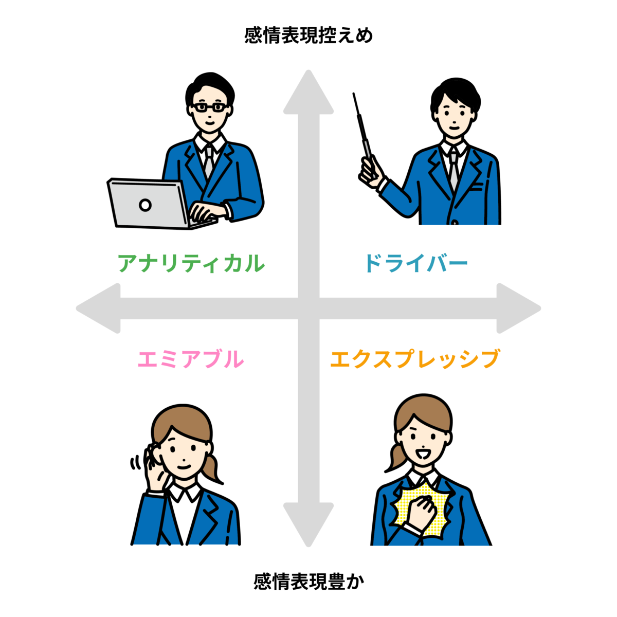 人とのコミュニケーションのとり方を4つのスタイルにわけた理論