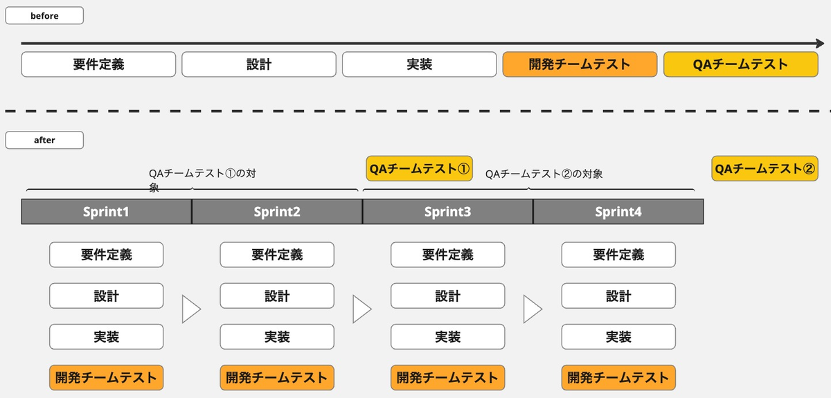 また今回はフェーズ1の中でもリリースをさらに分割することでこれまで開発工程の最後に行っていたQAチームのQA検証も分割して行いました。これにより1回のリリース内容が小さくなりテストすべきユースケースも明確になりました。