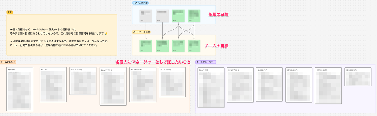 筆者の場合、チームの目標設定の際に、チーム全員への「マネージャーから託したいこと」 として期待値をみんなに見えるようにしています。